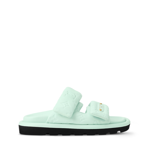 Dinamai berdasarkan bagian atasnya yang empuk dan tebal, Pool Pillow comfort mule ini dibuat dari material calf leather dengan deboss corak Monogram. Strap depannya dihiasi label berbahan kulit dengan detail Louis Vuitton signature. Desainnya yang mudah dikenakan dilengkapi footbed anatomis yang nyaman dan micro outsole ringan.