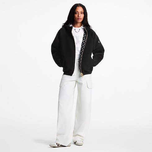 Jaket hoodie yang elegan ini dibuat dari bahan campuran wol dan sutra dengan teknik double-face. Salah satu sisinya yang berwarna polos menghadirkan kesan klasik, sementara seluruh permukaan sisi lainnya berhiaskan motif Monogram. Desainnya yang kasual dan berpotongan longgar dilengkapi dua saku samping, ritsleting dua arah di bagian depan, serta tali serut di bagian hoodie yang menyajikan beberapa opsi gaya.