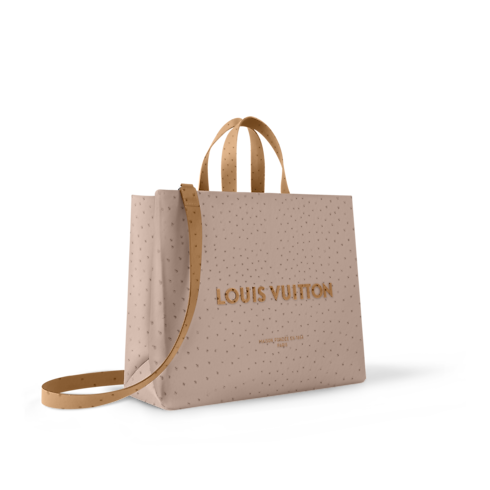 Shopper Tote MM kreasi Pharrell Williams hadir kembali dalam balutan material ostrich leather bernuansa warna elegan. Bahan exotic leather terlihat sangat lentur dengan garment finish yang diaplikasikan secara khusus. Kedua sisi tas ini dihiasi “Louis Vuitton” dan “Maison Fondée En 1854” signature. Tas ini dapat dijinjing menggunakan dua handle bagian atas berbahan ostrich leather.
