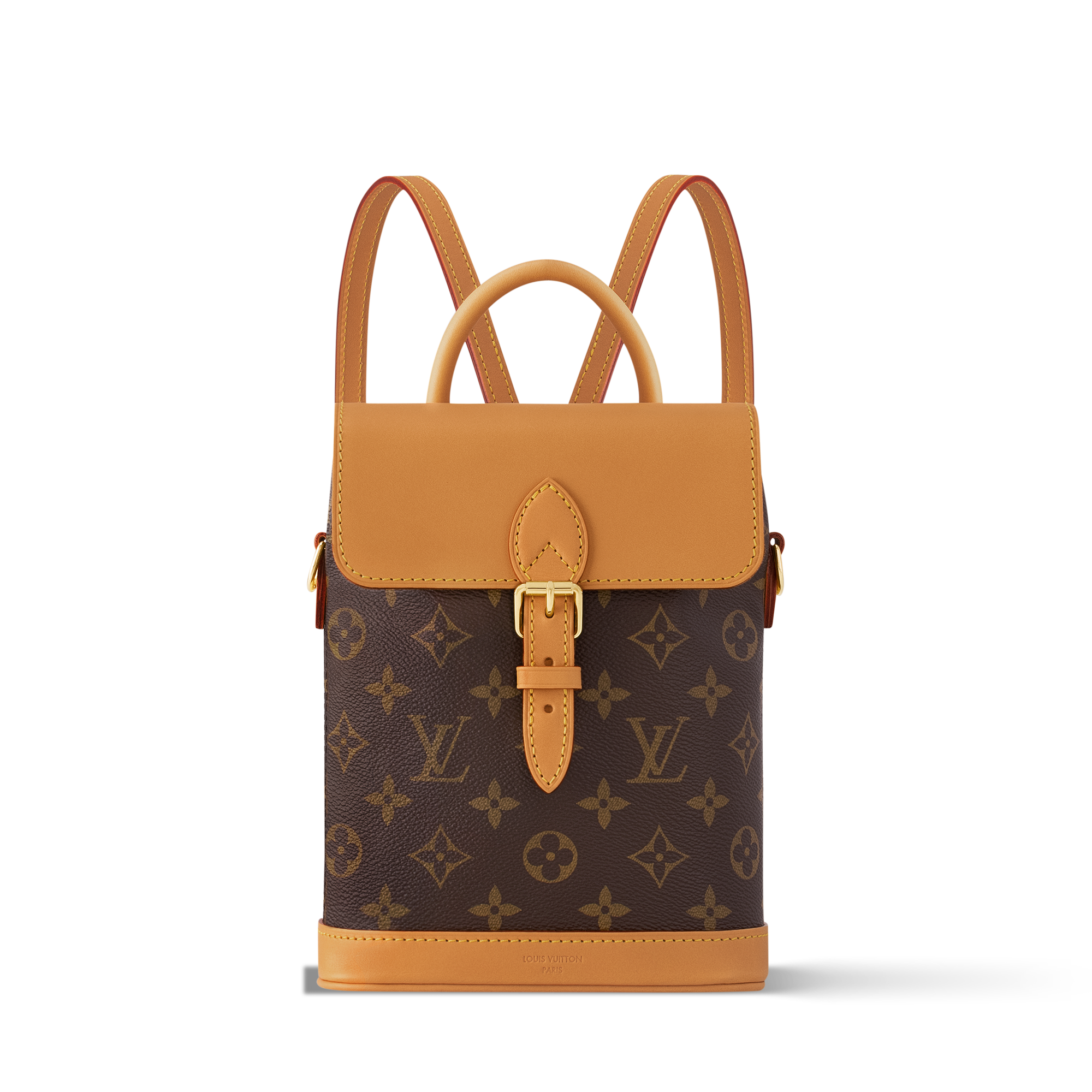 Terinspirasi dari ransel Arlequin dari tahun 1996, Soho Mini ini hadir dalam material Monogram canvas dengan model berukuran kecil sekaligus fungsional. Cocok untuk menemani aktivitas sehari-hari maupun traveling, desainnya menampilkan detail khas koper hard-sided Rumah Mode, berupa trimming berbahan natural cowhide leather dan gesper bergaya vintage. Tas ini dilengkapi lima D-ring yang menyajikan berbagai variasi gaya pemakaian.