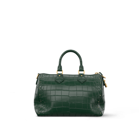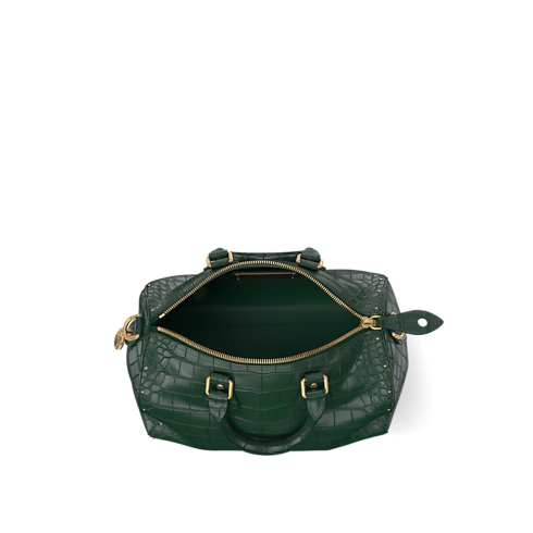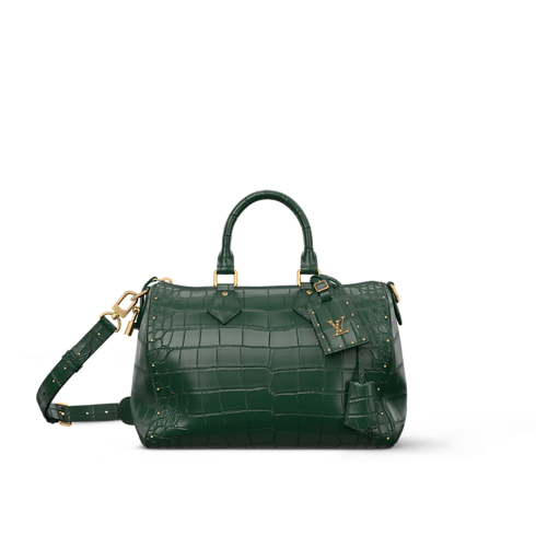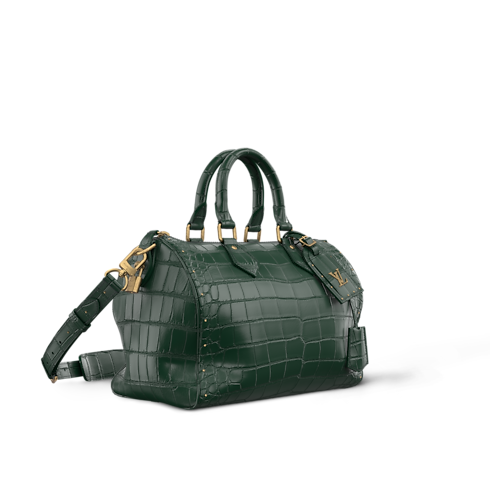 Speedy P9 Bandoulière 30 berbahan crocodilian leather ini menampilkan finishing "Butter Crocodile" kreasi Pharrell Williams, yang sangat halus dan lembut. Desainnya yang klasik hadir dengan detail rivet bernuansa aged gold, dan name tag yang disertai LV Initials keemasan. Tas ini disempurnakan oleh lining dari bahan lambskin bernuansa warna senada dengan warna dari bahan exotic leather.