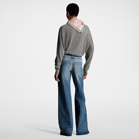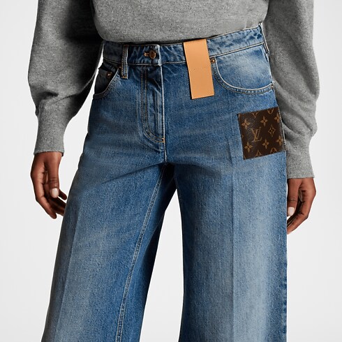 Detail khas Louis Vuitton bernuansa modern membuat celana jeans ini tampak memikat. Dibuat dari bahan stonewashed denim, celana ini memiliki desain kasual dengan potongan high waist dan boot-cut di bagian kaki. Tampilannya yang menawan dilengkapi loop berukuran besar dari bahan kulit di bagian pinggang serta patch Monogram canvas di pinggul.