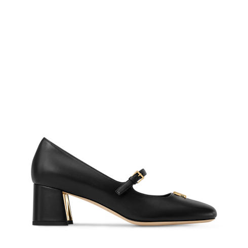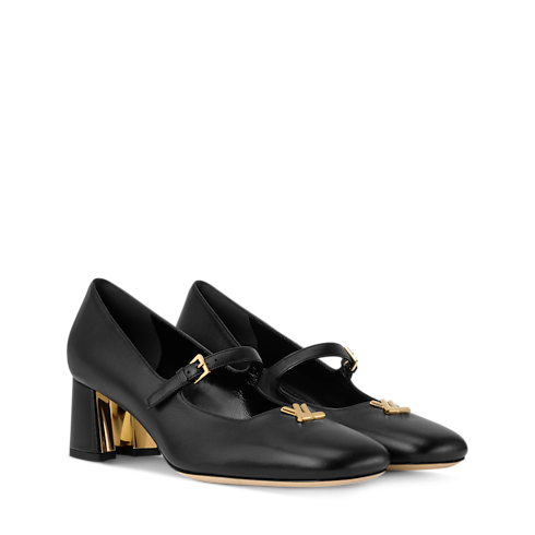 Swing Mary-Jane pump ini terbuat dari bahan lambskin lentur yang melengkapi desain rampingnya. Bagian ujungnya yang berbentuk kotak dipadukan dengan strap ramping di atas kaki, sementara heel rendah yang tebal memberikan sentuhan bergaya vintage. Sandal ini dihiasi aksesori LV Twist berwarna emas sebagai sentuhan khas, sementara tumit berbentuk separuh bunga menampilkan aksen metalik di bagian interior.