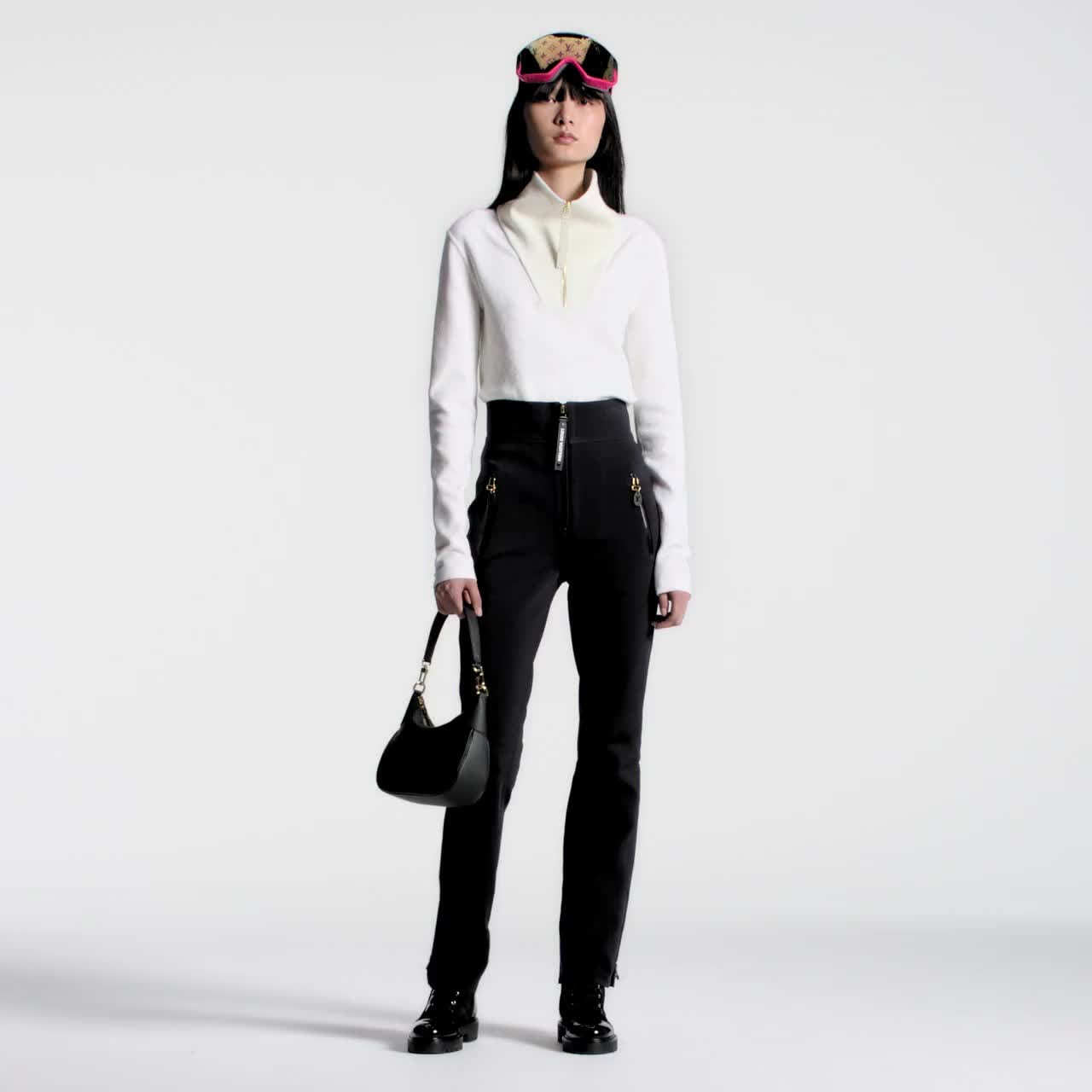 Tampil sporty dan modern, celana ski ini dibuat dari material technical jersey dengan desain yang mengikuti lekuk tubuh. Model high waist dan sedikit melebar membuat kaki terlihat lebih jenjang. Celana ini dilengkapi saku dan ritsleting di pergelangan kaki yang dapat diatur sesuai gaya yang diinginkan. Sentuhan ikonis tampak pada penarik ritsleting Louis Vuitton.