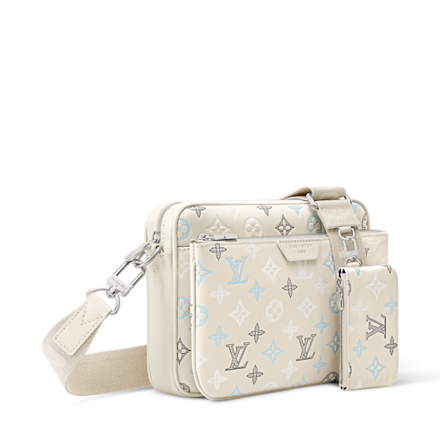 The Trio Messenger is fashioned from Monogram Shadow calfskin leather, with a triple serigraphy technique that gives the Monogram pattern a gradient effect. This versatile bag features a large flat pocket on the front and a small removable coin purse on the strap. The adjustable and removable textile strap enables shoulder or cross body wear.
