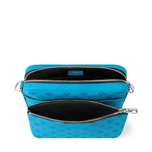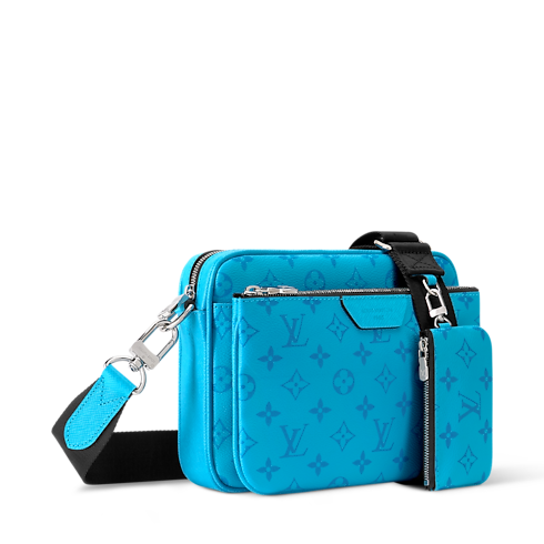 Trio Messenger ini terbuat dari kombinasi material Monogram coated canvas dengan Taigarama leather dengan lining berbahan tekstil warna hitam. Sentuhan modern dihadirkan melalui desain berwarna cerah, elemen Monogram bernuansa senada, serta tali lebar warna hitam. Aksesori yang fungsional sekaligus elegan ini terdiri dari satu pouch utama, serta satu saku beritsleting dan dompet koin yang dapat dilepas.